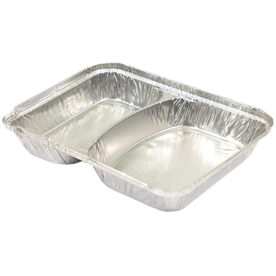 Caserola 2 compartimente, fara capac,din aluminiu pentru prezentare si transport hrana calda. Capacitate: 750 mlMod ambalare: 100 bucati / set, 10 set / bax