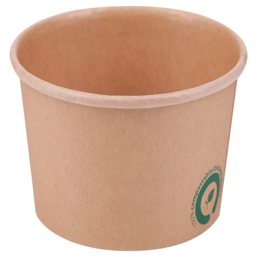 Pretul afisat este pentru 1 bax ce contine 500 bucati Boluri carton kraft PLA 480 ml fara capac.