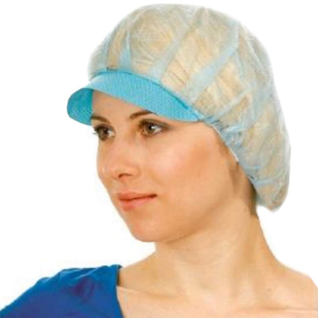Boneta bufanta albastra cu cozoroc, cu elastic, 48cm, 100 buc/set