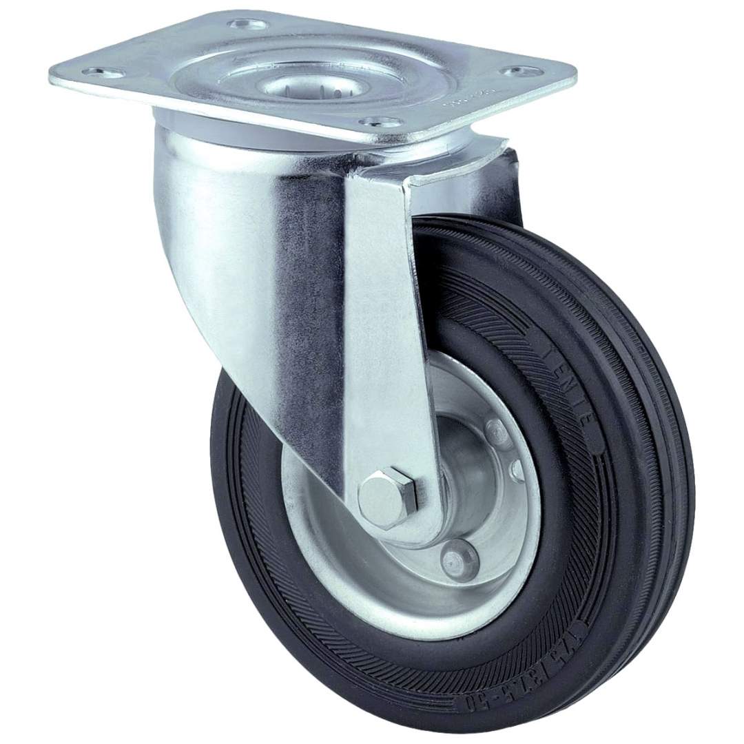 Jantă din tablă din oţel, ambutisată, suprafaţă de rulare din cauciuc plin negru, rulment cu role ace.