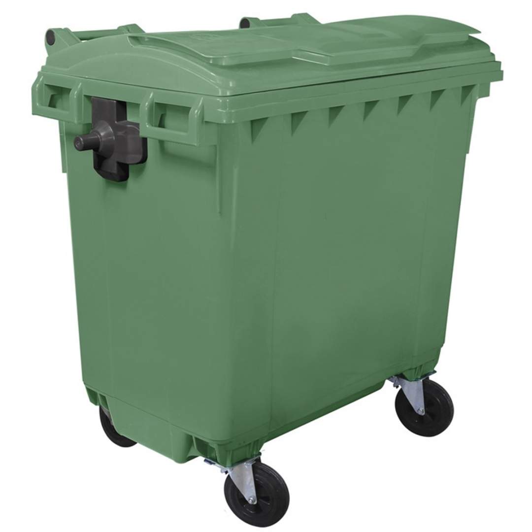 Container plastic colectare selectiva gunoi, volum 770 litri, cu capac plat, culoare verde