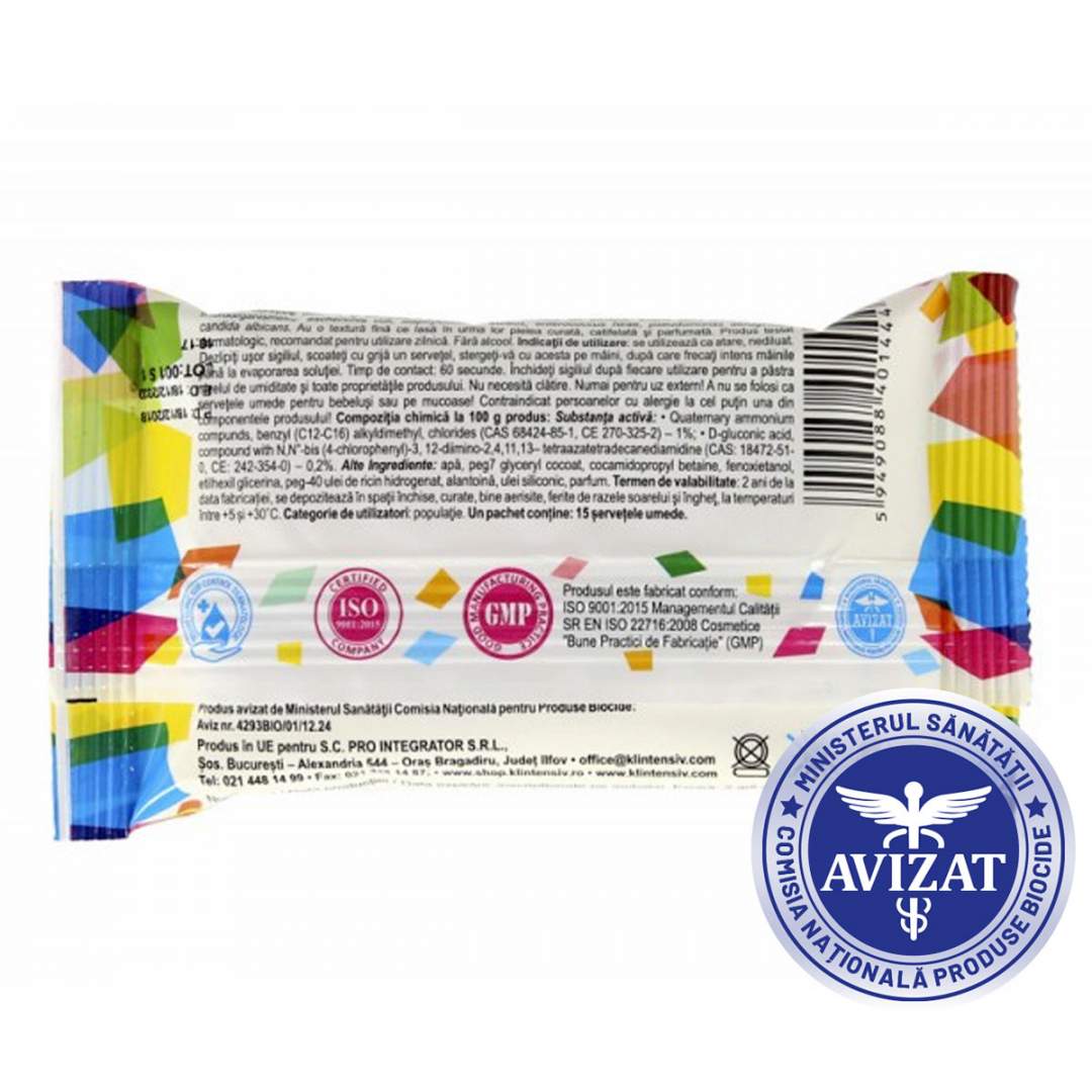 Servetele umede dezinfectante pentru maini, Klintensiv (pachet 15 bucati)