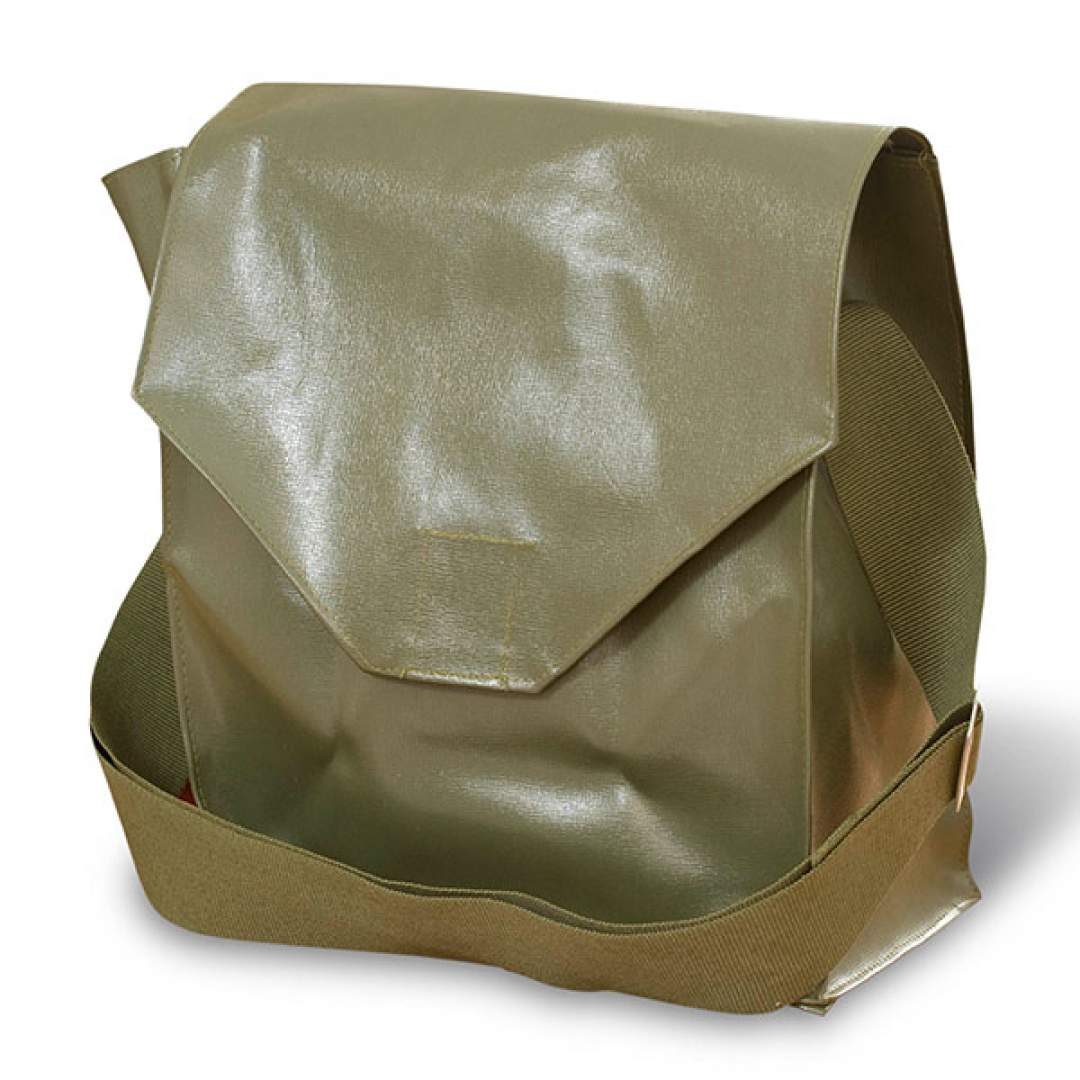 Sacul port masca este de forma paralelipiedica, executat din PVC pe suport textil. Este prevăzut cu sistem de inchidere din banda velcro și curea de purtare reglabila cu latimea de 50 mm și lungimea de 1500 (lungime activa 1300 mm)