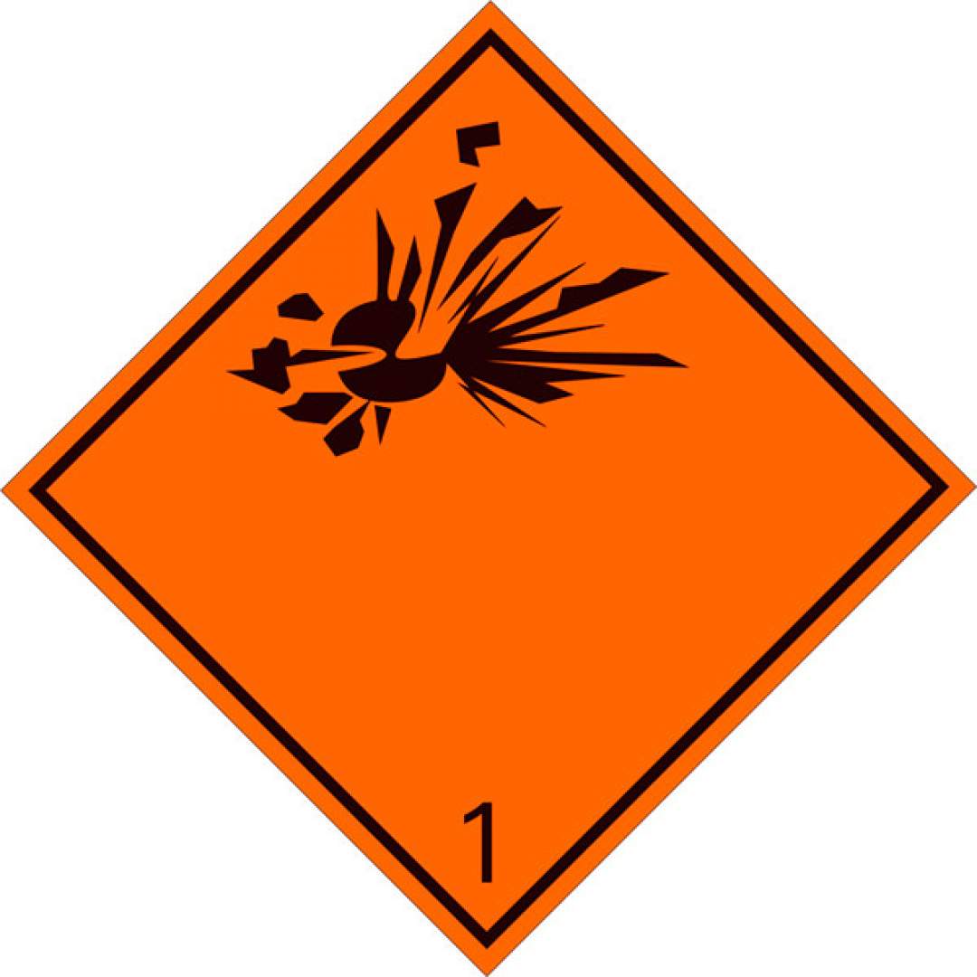 Eticheta ADR clasa 1 aluminiu Transport substante si obiecte explozive (300x300mm)