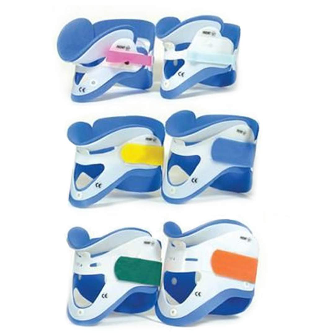 Guler cervical in doua bucati (fata si spate). Confectionat din material plastic si captuseala lavabila atasata cu nituri din plastic, echipat in centru cu o gaura pentru traheostomie, inchidere reglabila prevazuta cu “scai”.