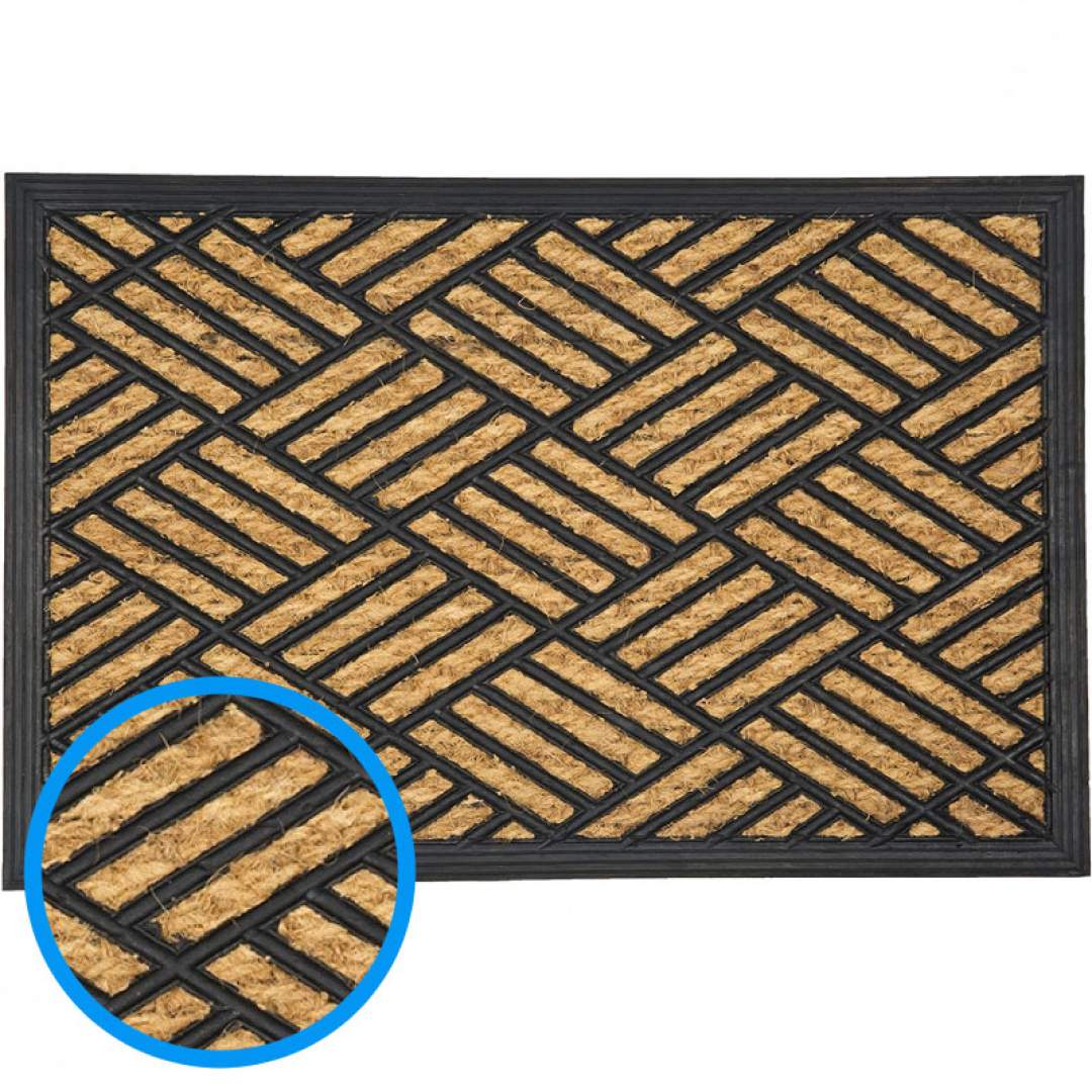 Covoras pentru intrare din cauciuc si fibre de cocos, cu model dungi diagonale.