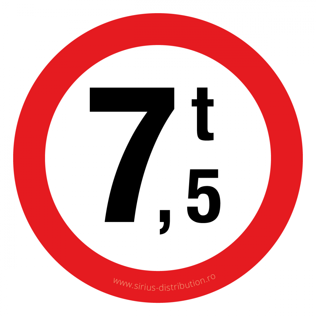 Indicator rutier interzicere sau restrictie [ Accesul interzis vehiculelor cu masa mai mare de 7.5t ], forma circulara, reflectorizant