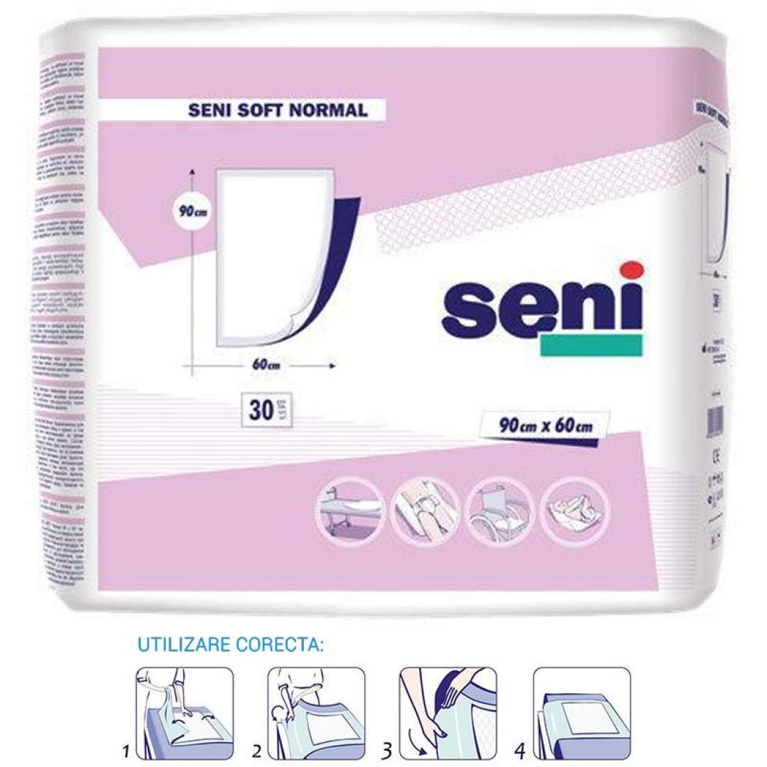 Aleze igienice (protectii pat) cu folie impermeabila in partea inferioara - Seni Soft Normal 90x60 cm (30 bucati)