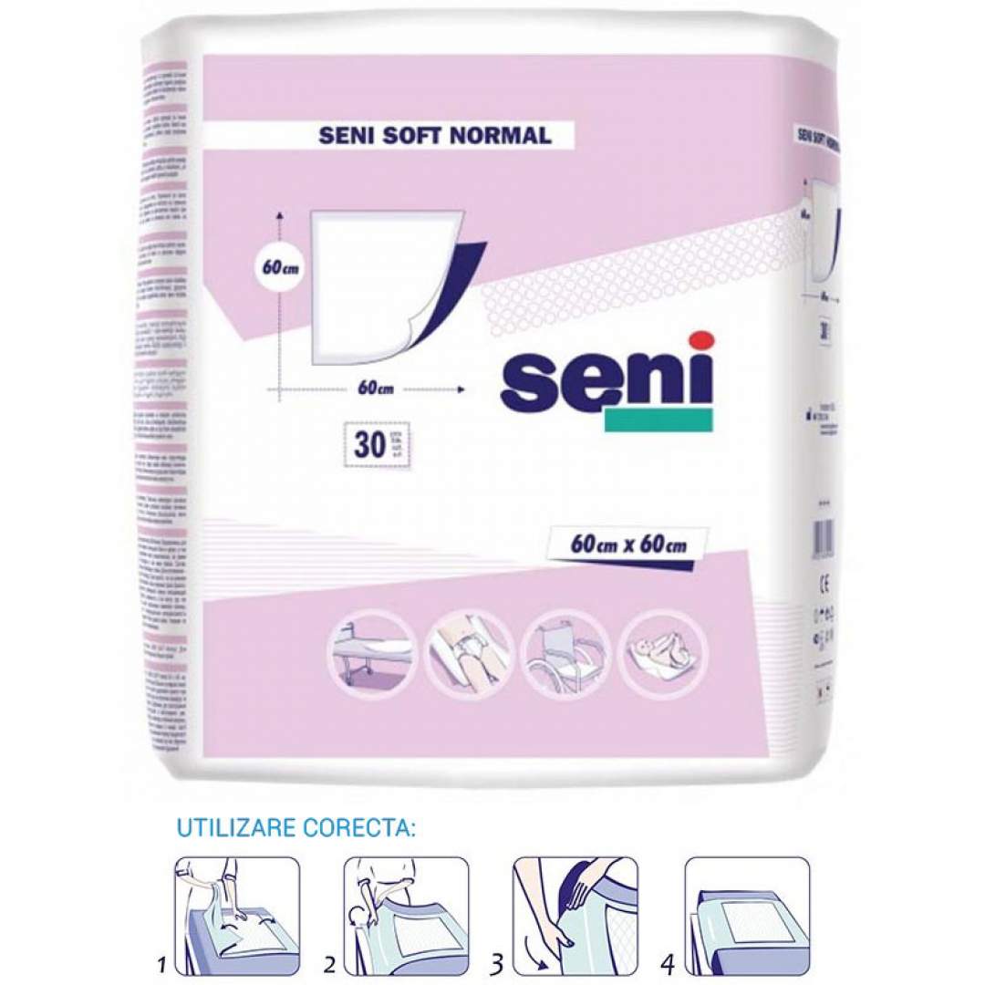 Aleze igienice (protectii pat) cu folie impermeabila in partea inferioara - Seni Soft Normal 60x60 cm (30 bucati)
