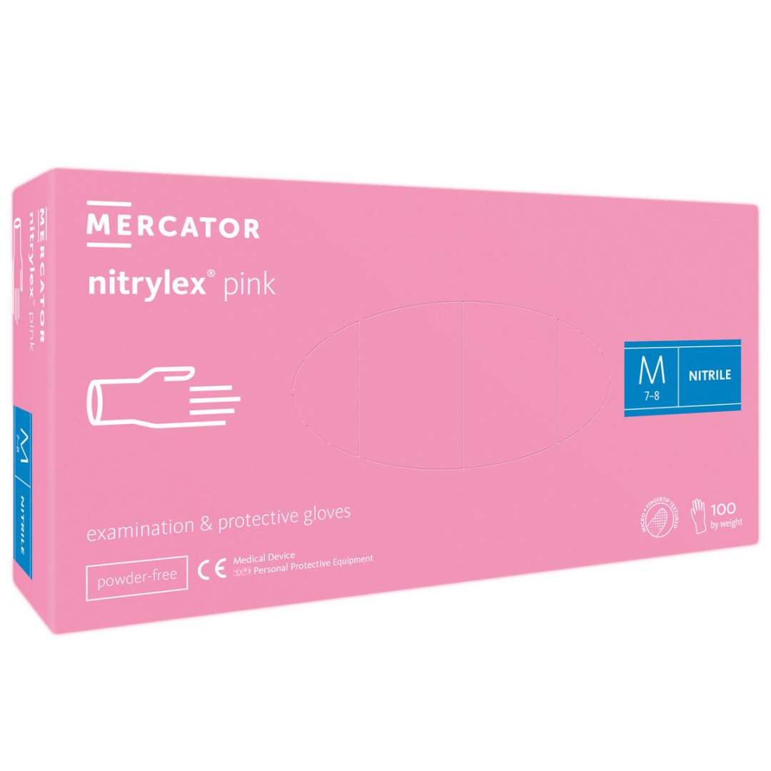 Manusi nitril Roz nepudrate, marimea M - Nitrylex Pink (100 bucati)