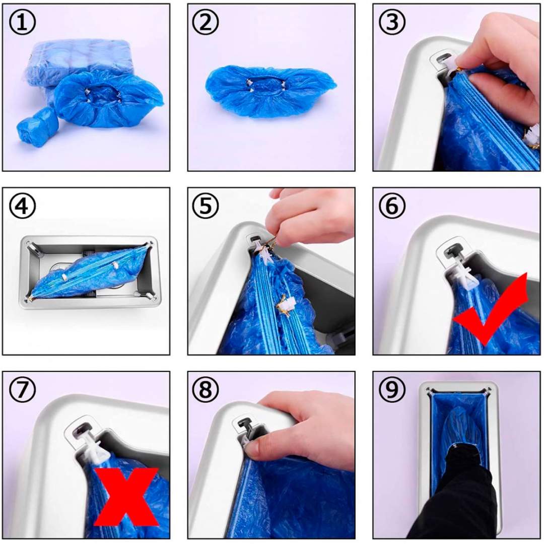 Dispenser semi automat acoperitori cu clema T + 100 acoperitori cadouDispenserul semi automat de acoperire a pantofilor functioneaza pe baza unui mecanism cu arc, deci nu este nevoie sa il conectati la sursa de alimentare pentru a fi utilizat. Acesta va elibera automat un acoperitor in jurul pantofului cand pozitionati piciorul in centrul dispenserului si apasati cu mijlocul talpii pantofului. Va acoperi rapid si eficient pantofii dvs.