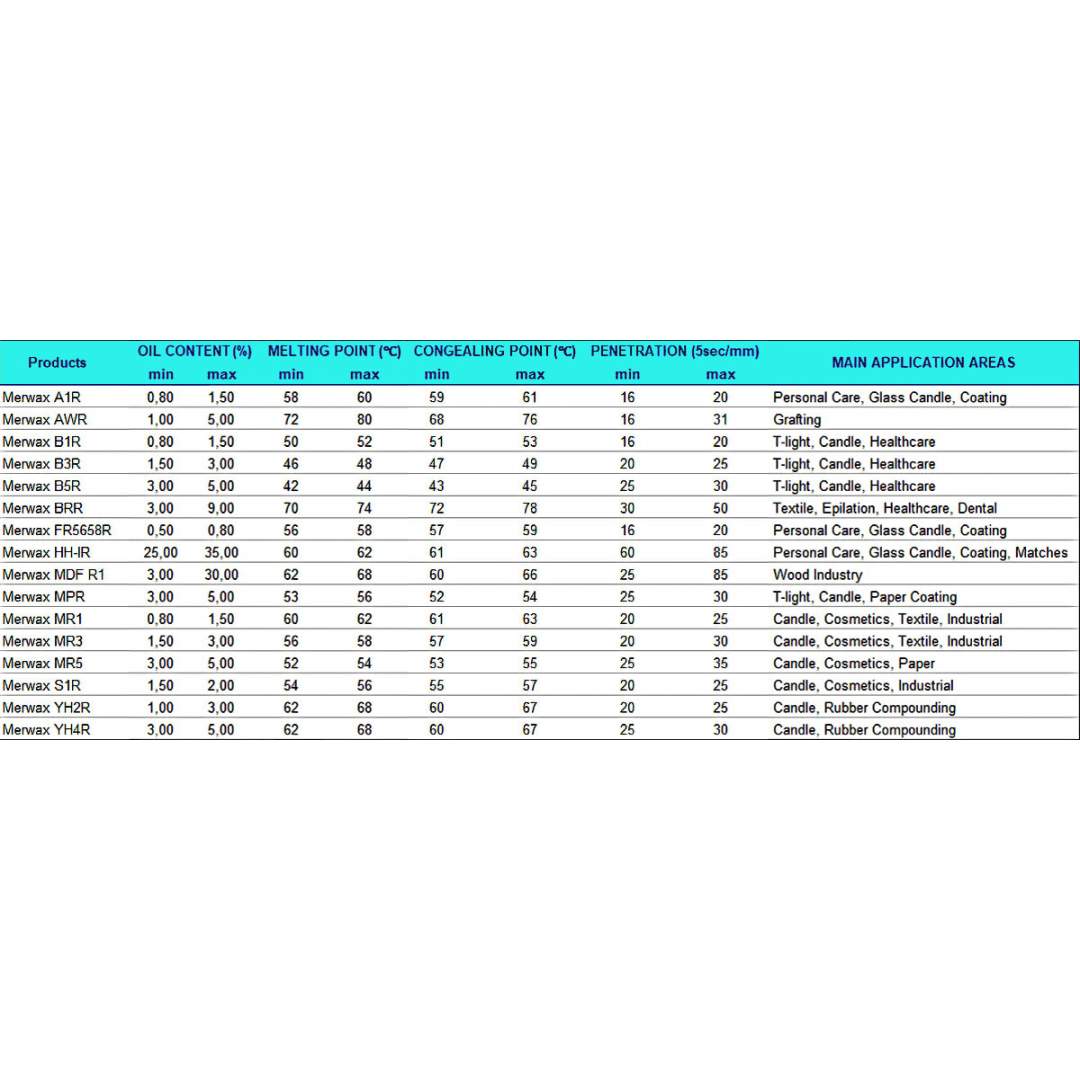 Parafinele se impart in semi-rafinate si complet rafinate, in functie de continutul de ulei din ele, astfel ca parafine complet rafinate sunt considerate cele cu un continut de ulei mai mic de 0,5%.
