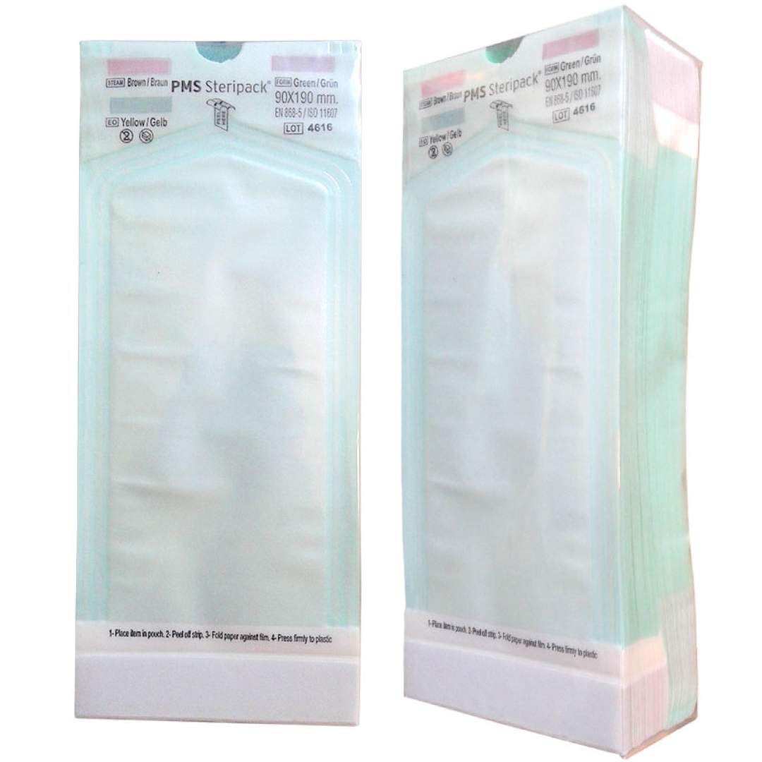 Pungile pentru sterilizare cu abur (autoclav) 90x270mm sunt pungi plate (fara pliu), asadar cu cat instrumentarul este mai mare in diametru, volumul interior al pungii se va reduce mai mult.Pungile au indicator/martor pentru abur, formaldehida si etilen-oxid (STEAM, FORM, EO).