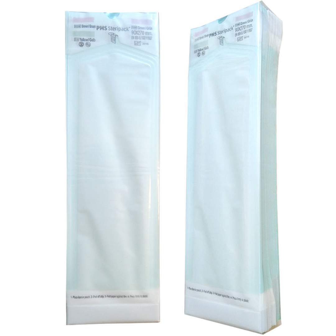 Pungile pentru sterilizare cu abur (autoclav) 90x270mm sunt pungi plate (fara pliu), asadar cu cat instrumentarul este mai mare in diametru, volumul interior al pungii se va reduce mai mult.
