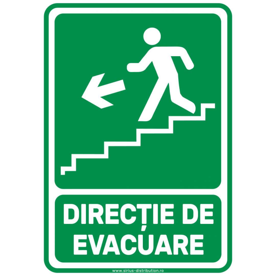 Autocolant de semnalizare pentru indicarea zonelor prin care se face evacuarea persoanelor/bunurilor. Acest autocolant este realizat din folie PVC, autoadeziva cu o grosime de 75 de microni. Se aplica pe suprafete plane, curate și uscate in locuri bine iluminate, vizibile și usor accesibile. Dimensiuni: 148mm x 210mmLivrarea produselor