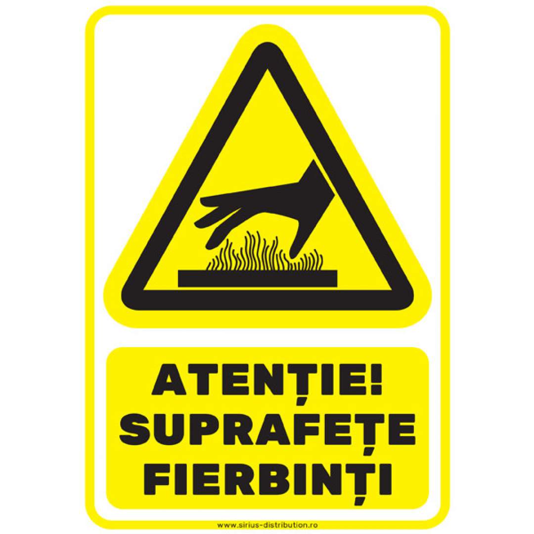 Indicator autocolant - " ATENTIE SUPRAFETE FIERBINTI!" - PVC plastifiat - A5 - 148x210mm