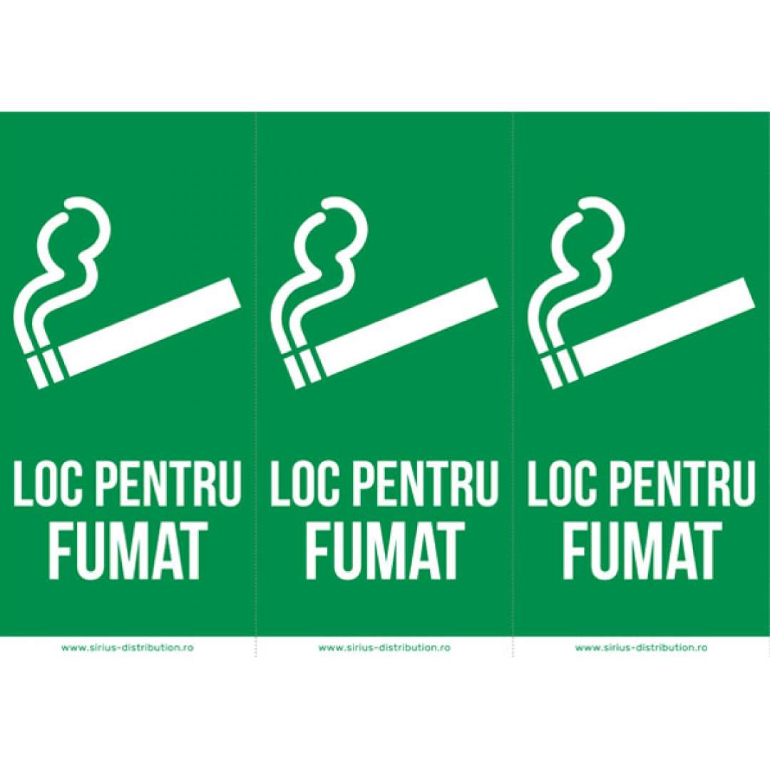Indicator autocolant "LOC PENTRU FUMAT" - PVC plastifiat - 99x210mm - Set 3 bucăți / A4