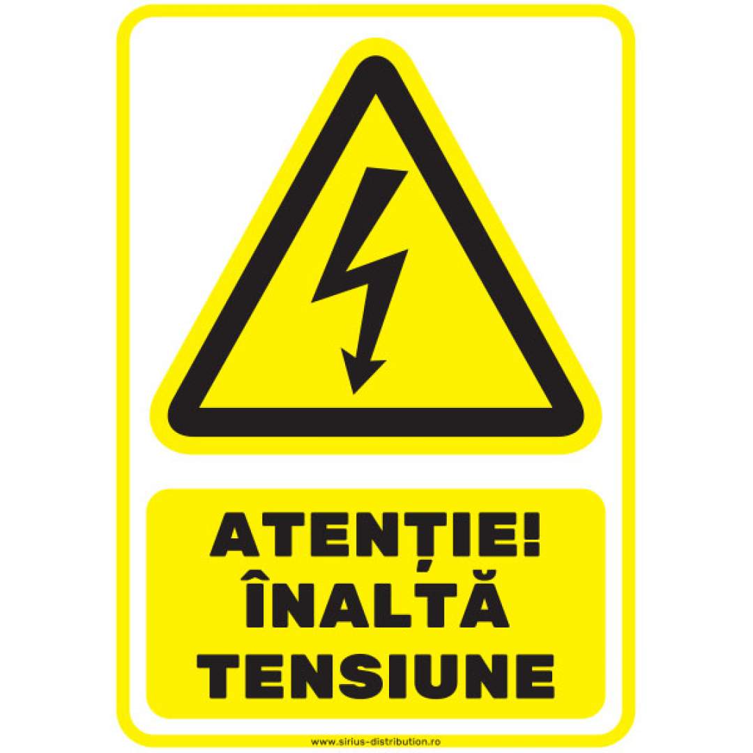 Indicator autocolant - ATENTIE! INALTA TENSIUNE - PVC plastifiat - A4 - 210x297mm (1 buc.)