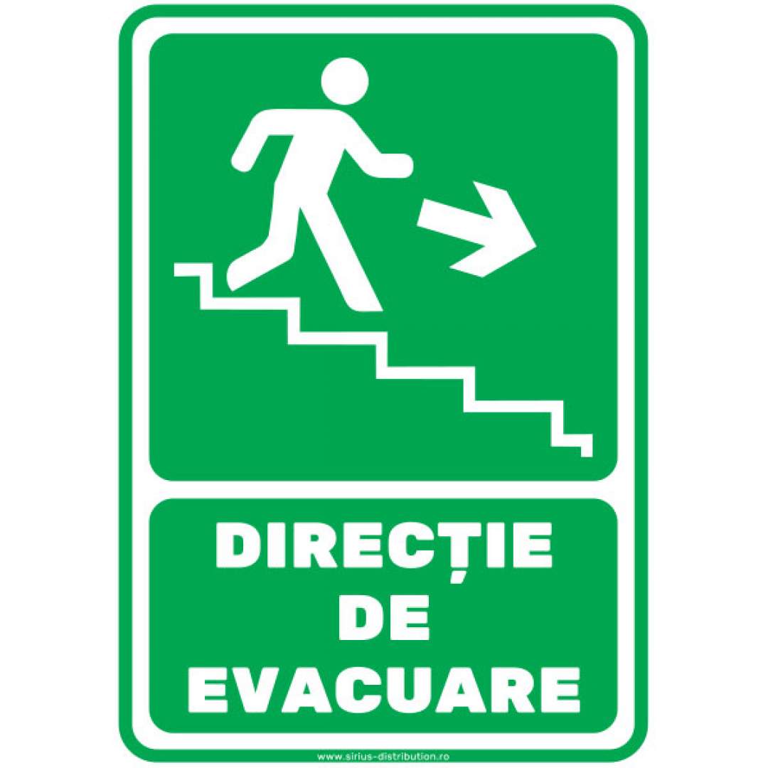 Indicator autocolant - DIRECTIE DE EVACUARE - trepte, jos, dreapta - PVC plastifiat - A4 - 210x297mm (1 buc.)
