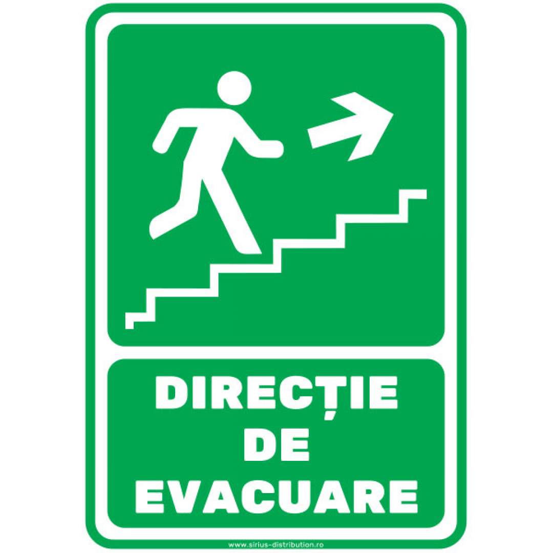 Indicator autocolant "Directie de evacuare" trepte, sus, dreapta - PVC plastifiat - A4 - 210x297mm