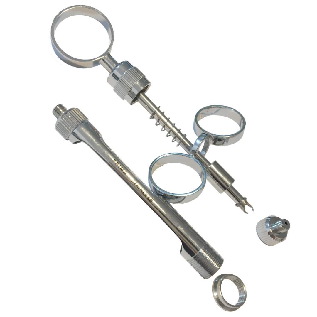 Seringa pentru anestezie, otel inox, cu 2 varfuri: surub metric și inch, 3 inele (1 bucata)