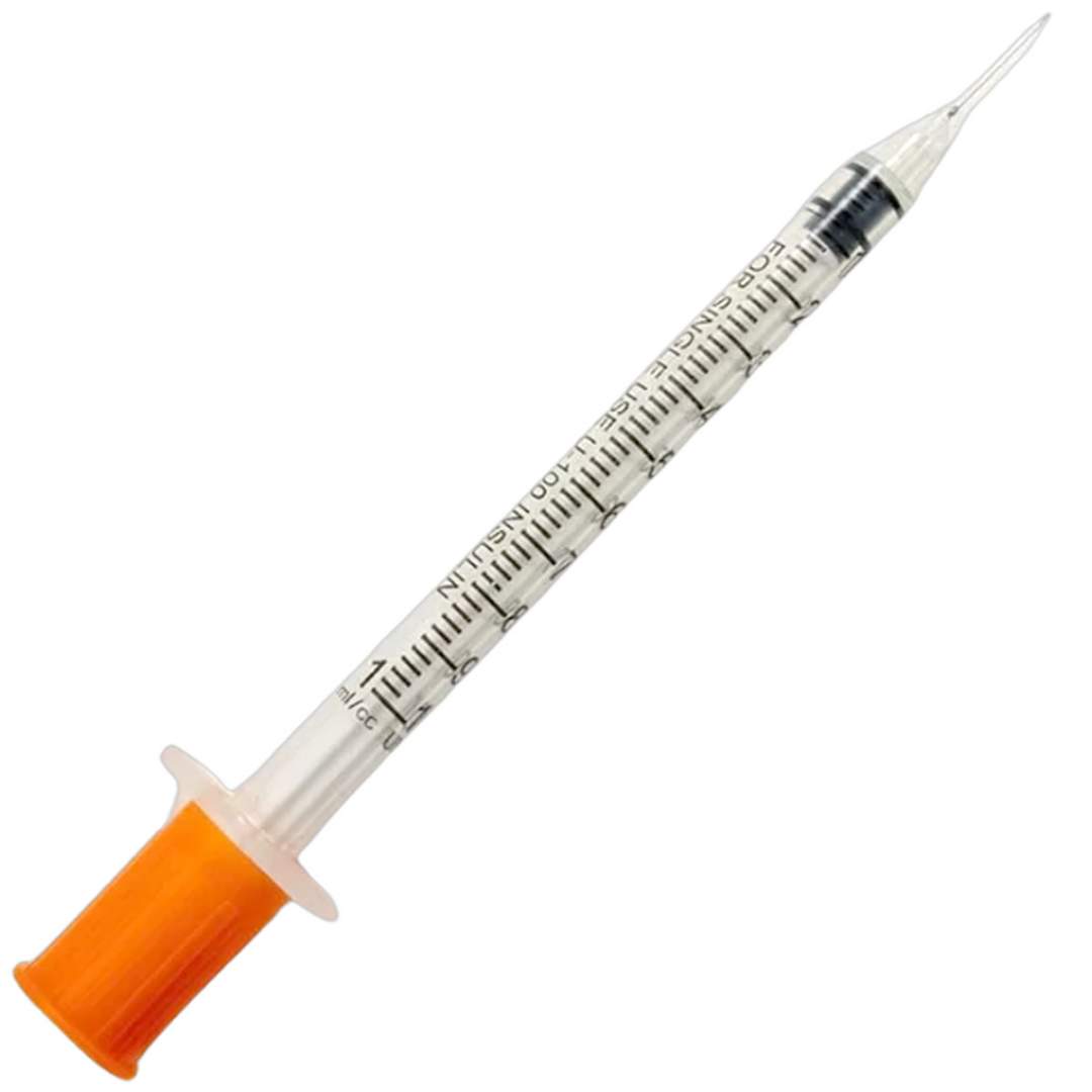 Seringi pentru insulina 1 ml cu AC INCASTRAT (FIX) 29G din 3 componente, piston prevazut cu garnitura din cauciuc natural pentru uz medical.Marimi: 1 ml, ac 29G 1/2' (0.33x13mm)
