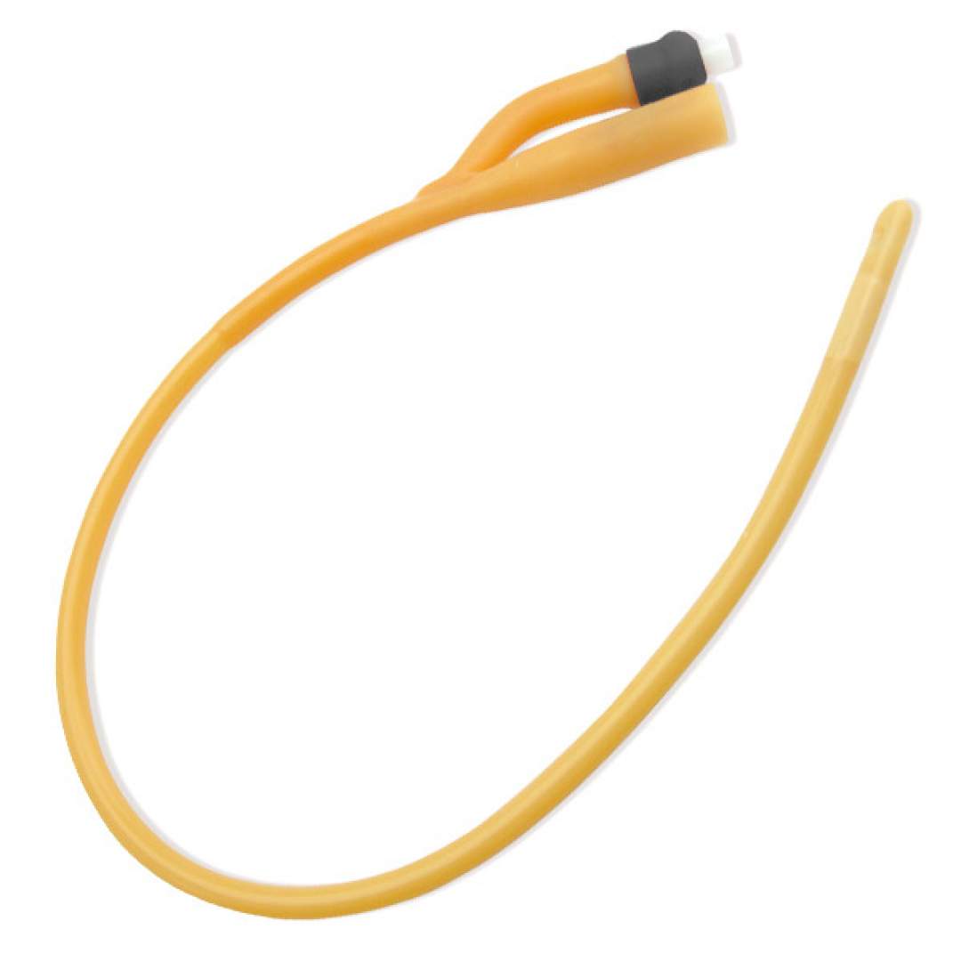 Sonda urinara cu 2 cai este realizata din latex siliconat si dispune de un varf Nelaton atraumatic, cilindric, drept.