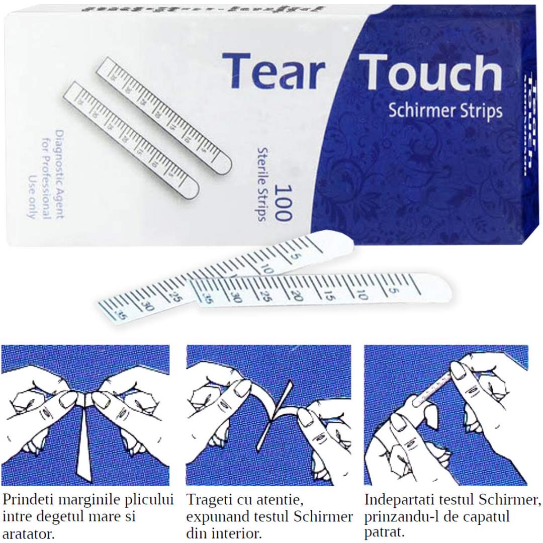 Test Schirmer - benzi oftalmice Schirmer pentru masurarea productiei lacrimale, folii gradate in ambalaj steril individual (100 bucati)