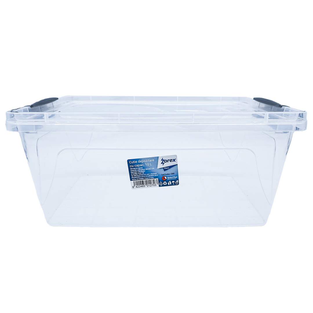 Cutie depozitare si transport din plastic, transparenta, cu manere si capac, volum 10 litri (set 2 bucati)