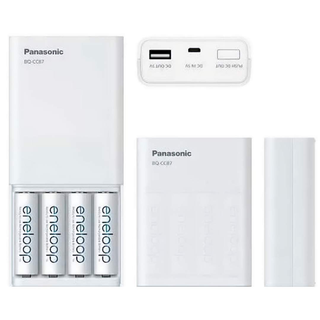 Primul incarcator Panasonic cu functie powerbank. Nu este inclus un cablu de alimentare, deoarece incarca orice dispozitiv USB. BQ-CC87 are 4 canale independente, fiecare avand propriul indicator LED in 3 culori. Acest lucru permite incarcatorului sa indice capacitatea bateriilor, sa arate starea procesului de incarcare si sa efectueze o simpla verificare a duratei de viata a bateriei.Include cablu USB - Micro USB si 4 acumulatorii Eneloop AA 1900mAh