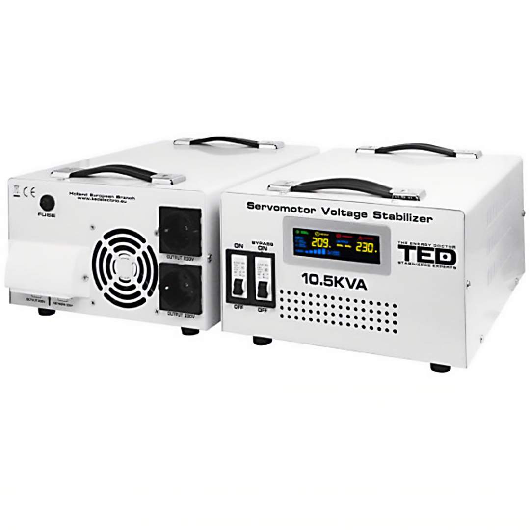 Stabilizator tensiune monofazat 10.5kVA 6000W, 2 iesiri schuko, cu servomotor TED000033