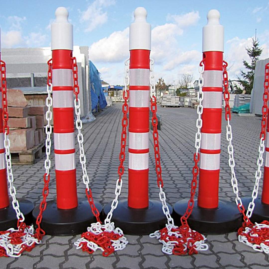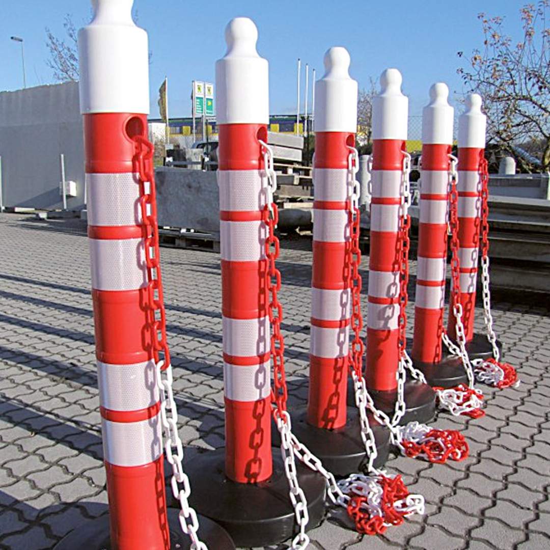 Se pot folosi mai multi stalpi conectati cu lant plastic pentru a delimita o zona mai mare