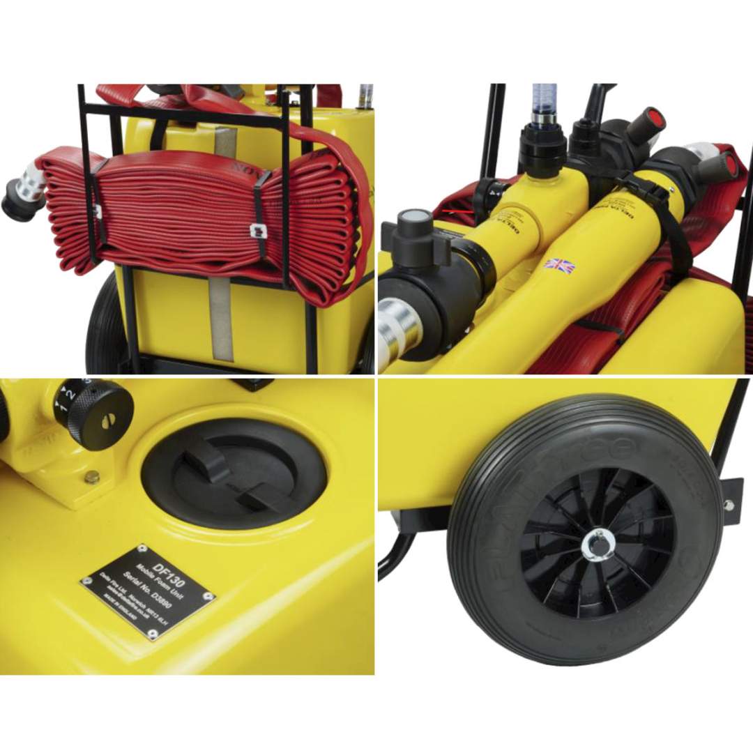 Proiectată și fabricată de Delta Fire în Marea Britanie, gama de unități mobile de spumă DF 130 este construită în conformitate cu standardul de management al calității ISO9001, din materiale de cea mai bună calitate, inclusiv un rezervor de spumă GRP de înaltă calitate, cadru din oțel acoperit cu plastic rezistent la coroziune și anvelope din cauciuc solid, rezistente la perforare.